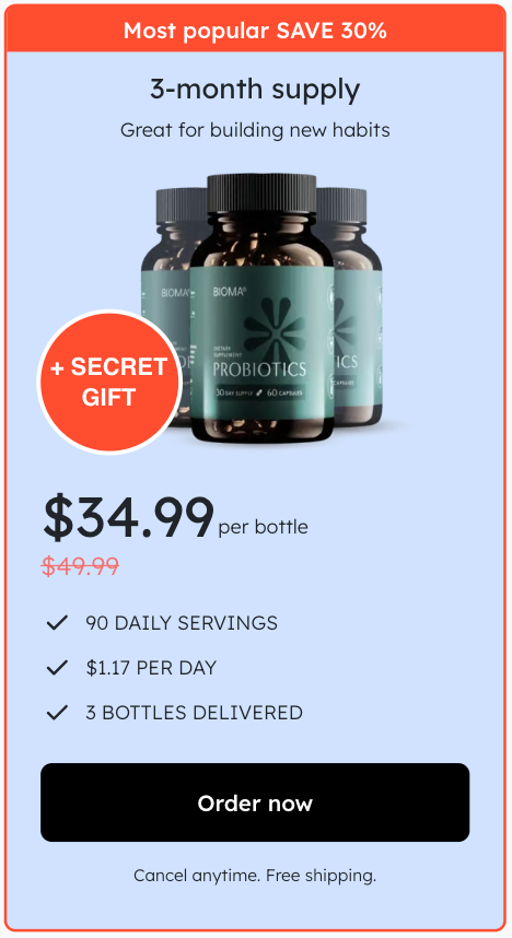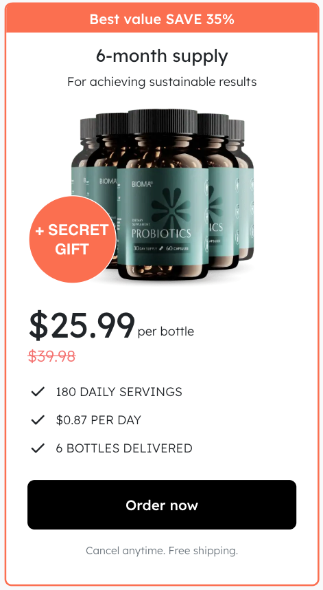 At this moment you can order Bioma Probiotics supplement for 51% OFF . This is a Limited-Time Offer and it won’t be available for long.