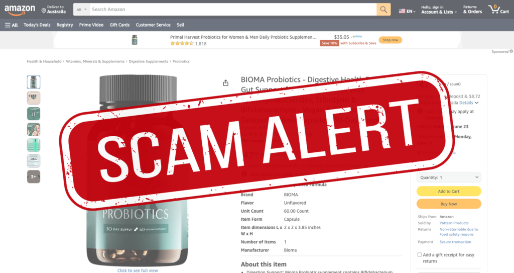 Unfortunately, many people are scammed when they order the Bioma Probiotics supplement because they are not using the official website to buy the supplement. Many people are ordering Bioma Probiotics on Amazon because is cheaper, and are getting fake bottles.